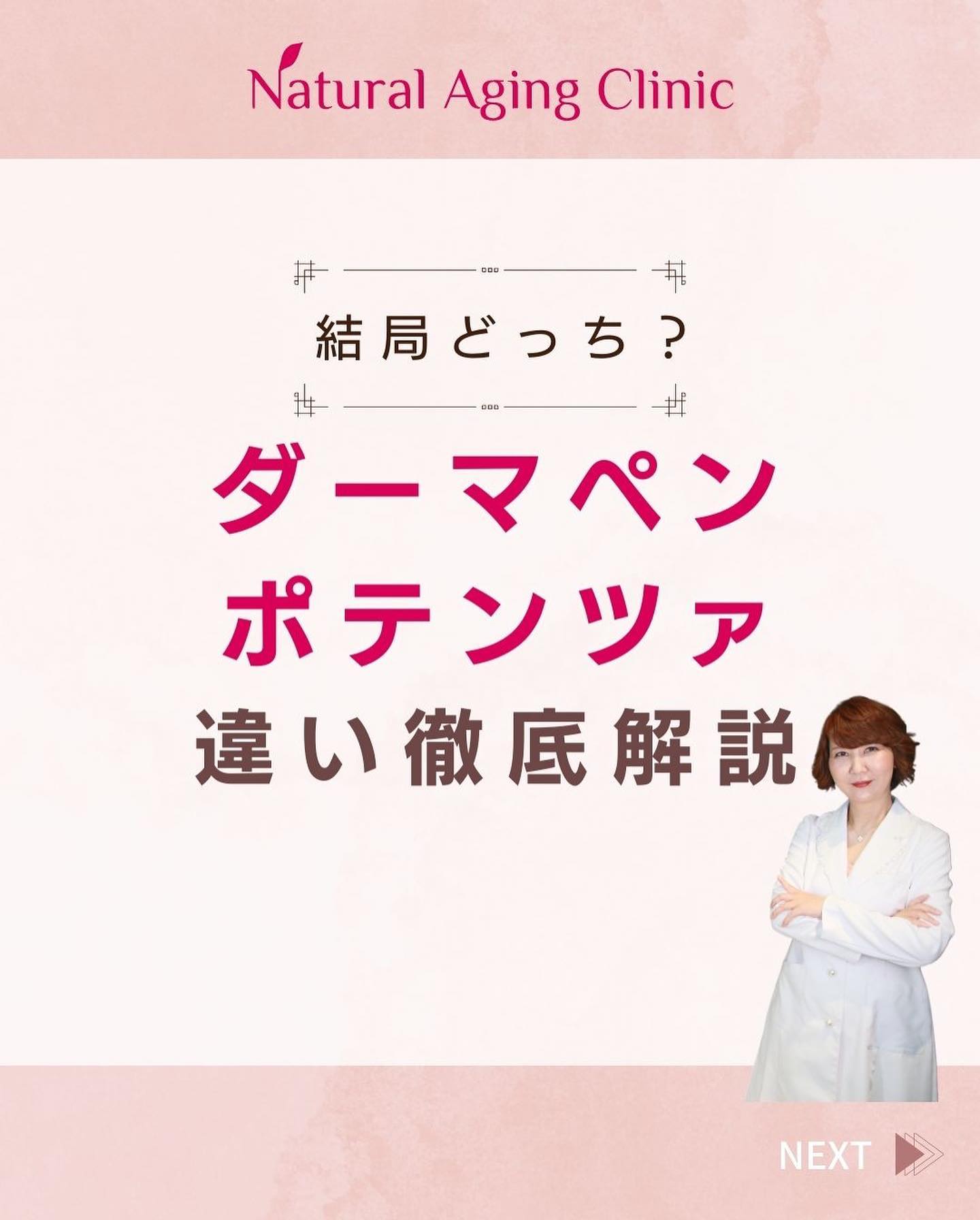 今回はダーマペンとポテンツァの違いを徹底解説しました!当院ではお客様に合わせて施術をしております。ぜひお気軽にご相談ください❣️———————————————宗雪正美ナチュラルエイジングクリニック院長美容皮膚科医■千葉駅から徒歩2分‍♀️■フォトフェイシャル症例数_2,000件以上■美容医療初心者さんに優しい医院■あなた専用「美」のかかりつけ医‍⚕️■丁寧なカウンセリングでオーダーメイド治療■女性医師のみ(経験豊富なスタッフ多数)🗓休診日は水曜日(10:00-18:00)※日曜日は小山内先生の診療となります。043-441-3063〒260-0031千葉県千葉市中央区新千葉2丁目2-1新日本EXビル 5階———————————————プロフィールのハイライトにあるLINE@から簡単に予約できます。#美容クリニック#美容医療#美容皮膚科#ナチュラルエイジングクリニック#naturalagingclinic#シミ#若返り#肌質改善#くすみ#アラフォー美容#フォトフェイシャル#ダウンタイム#アンチエイジング#小じわ#アンチエイジングケア#ヒアルロン酸#ボトックス#ピーリング#ボトックス注射#たるみ#40代美容#50代美容#美容レポ#毛穴ケア#黒ずみケア#ニキビ#ニキビ跡#ハイフ#ポテンツァ